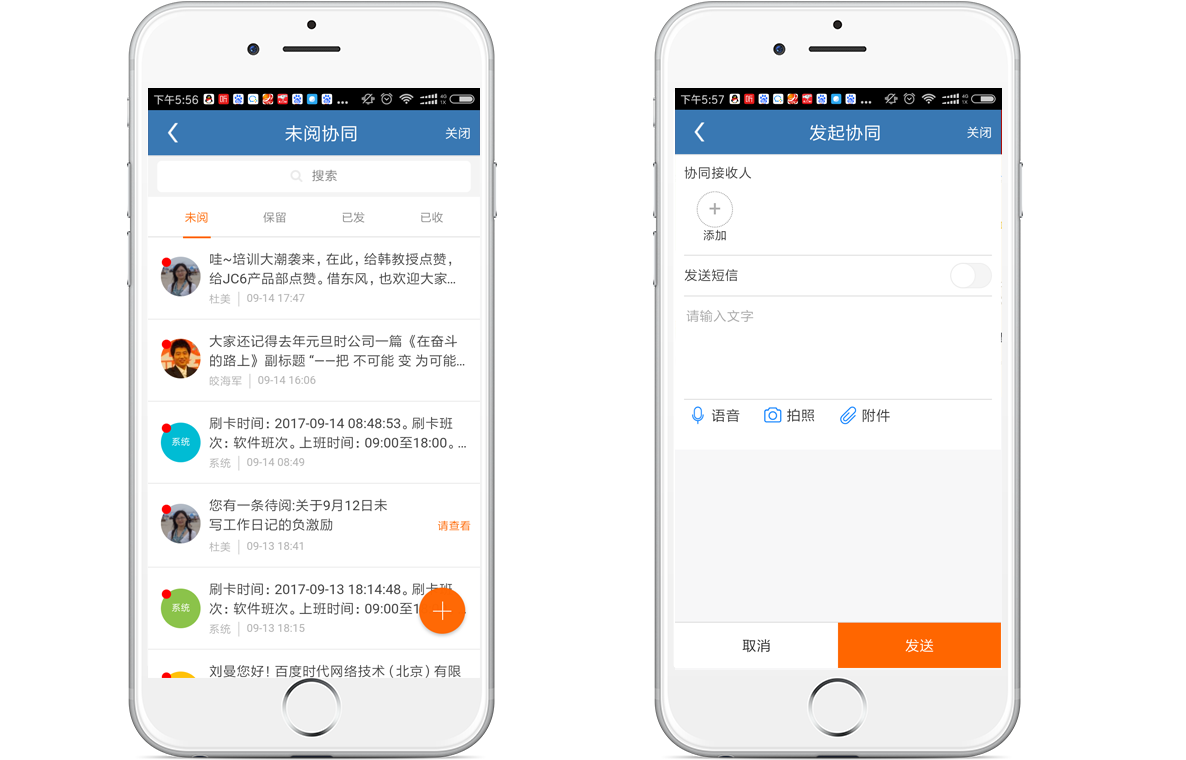 金和移動辦公OA系統(tǒng)支持IOS、Android等主流操作的手機系統(tǒng),集門戶、尋呼、日記、通訊錄、任務、流程(發(fā)起、待辦、已辦、待閱)、知識、日程、考勤、外勤、門戶、駕駛艙等應用為一體。